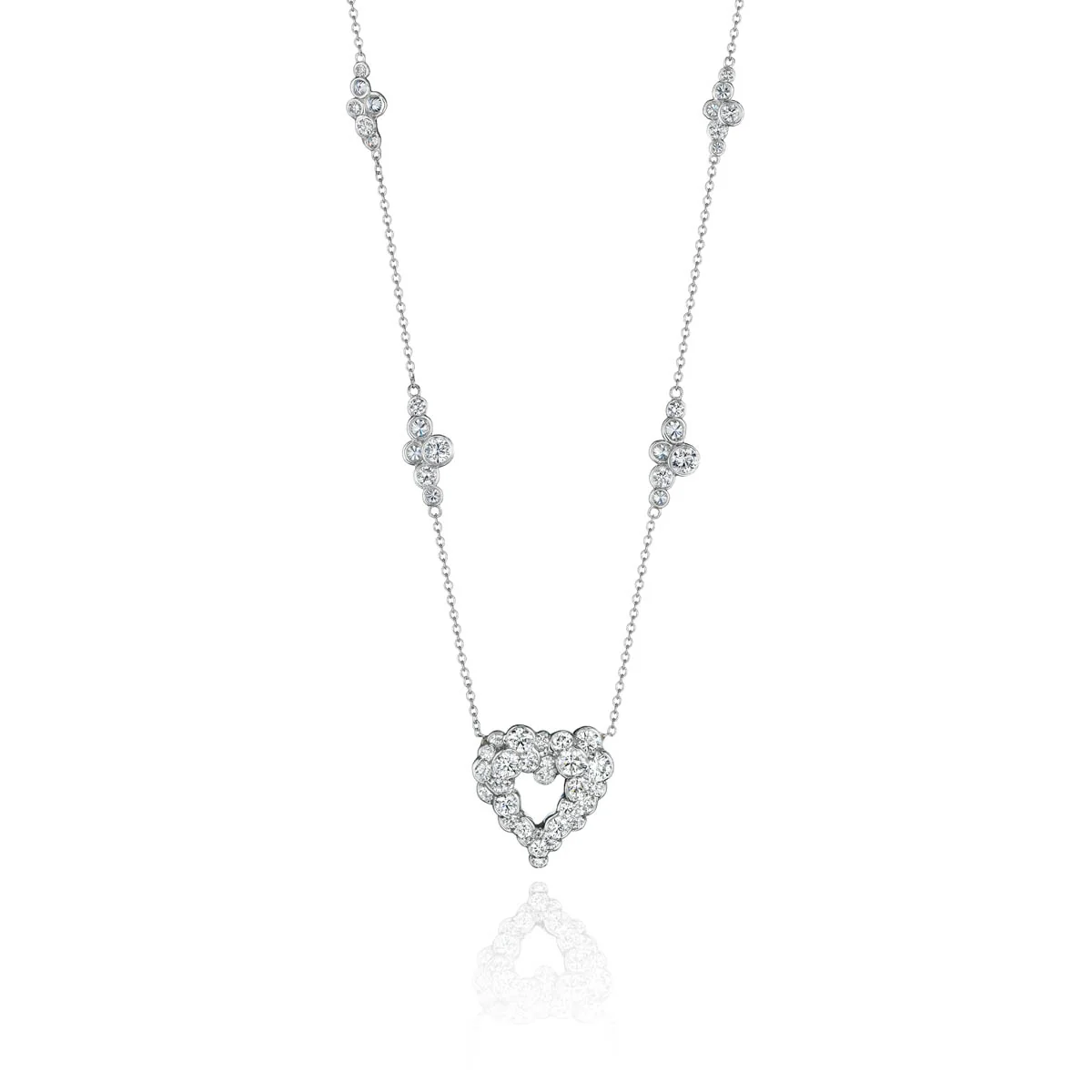 Discover charm of the CumuLLus Collection® Heart Pendant Necklaces—pieces that are as delightful as they are distinctive. Each necklace is a testament to personal style, available in your choice of lustrous platinum or luxurious 18K yellow, white, and rose gold. At the heart of these pendants, Ideal cut round diamonds dazzle in our hallmark CumuLLus Collection® setting, where they are elegantly arranged to create a beautiful, shimmering effect. Enhancing this captivating design, the chain features two small and two medium Pirouette™ sections, adding a touch of graceful movement and sophistication. Customize your CumuLLus Collection® Heart Necklace by selecting your preferred metal type and pendant size from the drop-down menus, and wear a piece that is a true reflection of your unique elegance and charm.